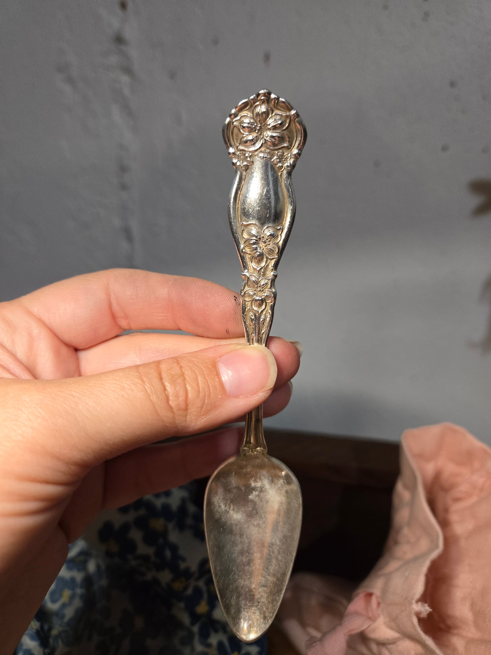 This unique spoon ring features the elegant Orange Blossom pattern from Wm. Rogers & Son 1910. Crafted with care, this ring is a beautiful addition to any jewelry collection. Available in size 8, it is the perfect fit for any finger. Add a touch of vintage charm with the Orange Blossom Ring.