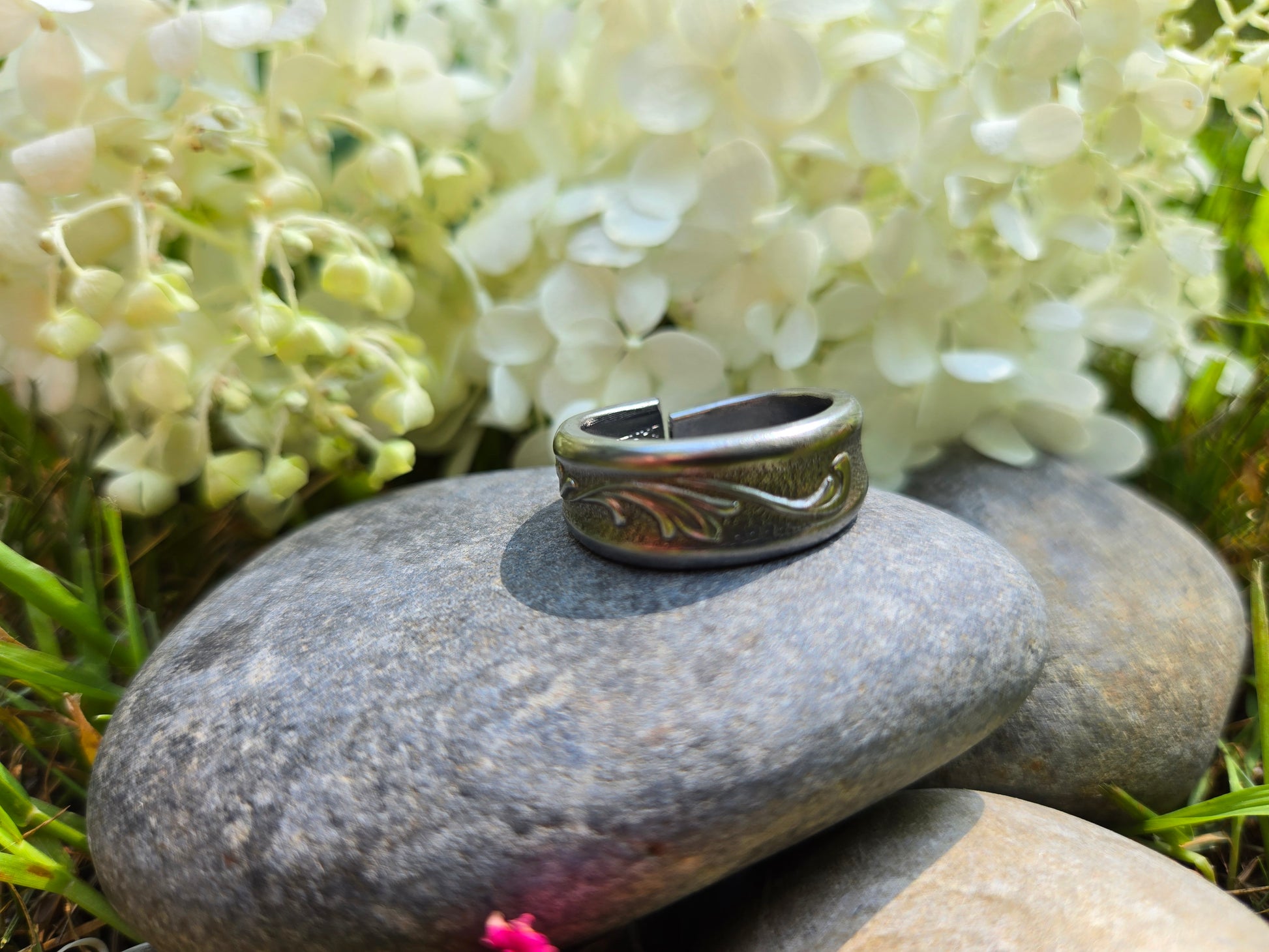 This stainless steel spoon ring in size 8.5 features a unique wave pattern, adding a touch of elegance to your finger. Made with high-quality materials, this ring is both durable and stylish, making it the perfect accessory for any occasion.